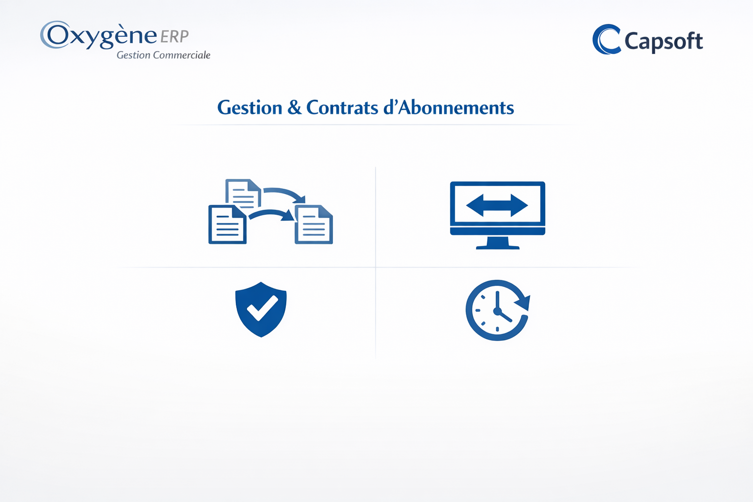 Dans le cadre de notre démarche continue d'amélioration de la solution Oxygène, nous avons déployé un nouveau module de navigation entre les documents de gestion (Devis, BCC, Factures) et les contrats d’abonnement. Cette nouvelle brique technique apporte une fluidité accrue dans le cycle de gestion commerciale et facilite le suivi des engagements contractuels associés.