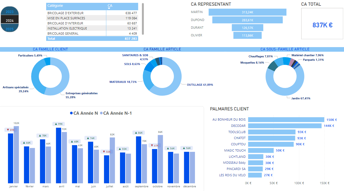 • KPI stratégiques : Marge brute, taux d’atteinte, écarts cumulés, évolution mensuelle…