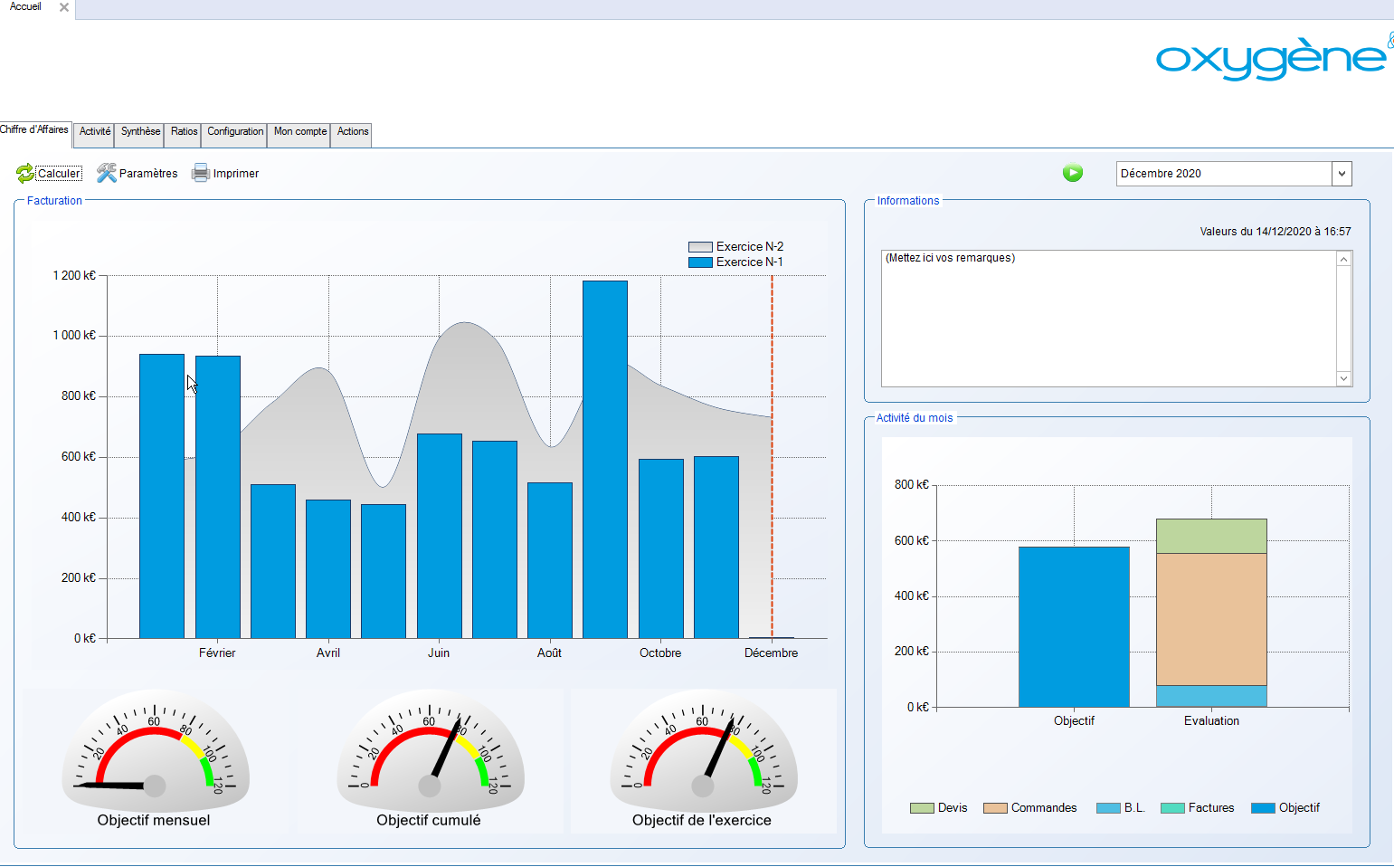 La base Oxygène ERP est connectée à Power BI, ce qui permet d’exploiter instantanément les objectifs de marge au sein de vos tableaux de bord.