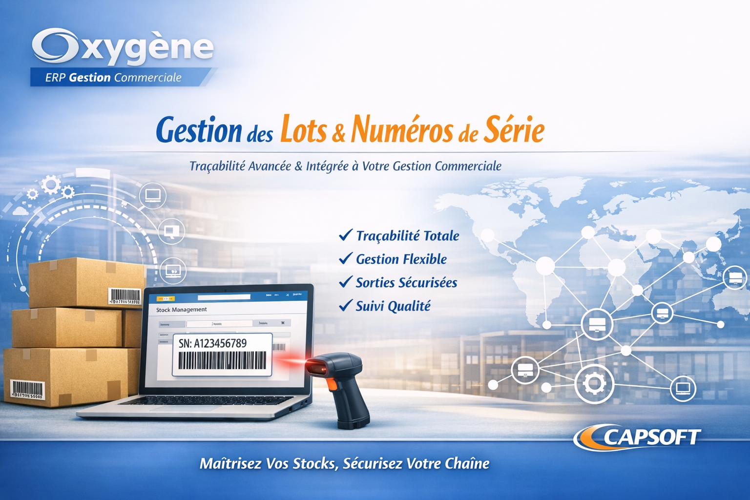La gestion des lots, sous lots et numéros de série est devenue un enjeu majeur pour de nombreuses entreprises : traçabilité, conformité réglementaire, suivi qualité, gestion des retours, contrôle des stocks… L’option « Lots & Numéros de Série » Oxygène apporte une réponse complète, flexible et parfaitement intégrée à la chaîne commerciale.